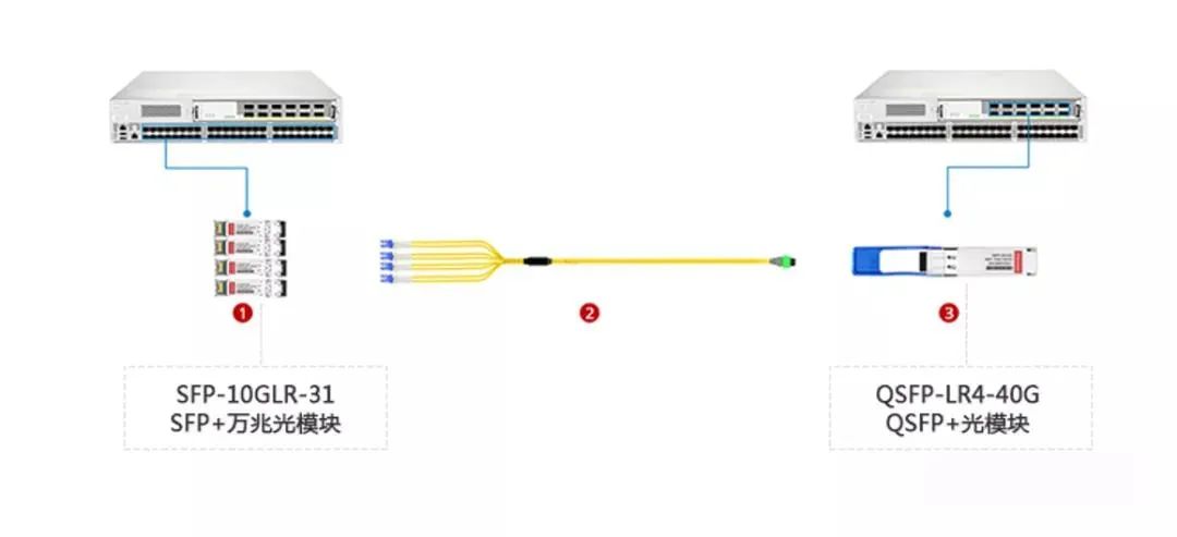 该连接方式主要实现了网络从10G向40G的扩展,可快速、简便的满足数据中心的网络升级需求。